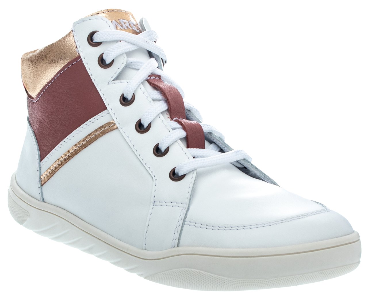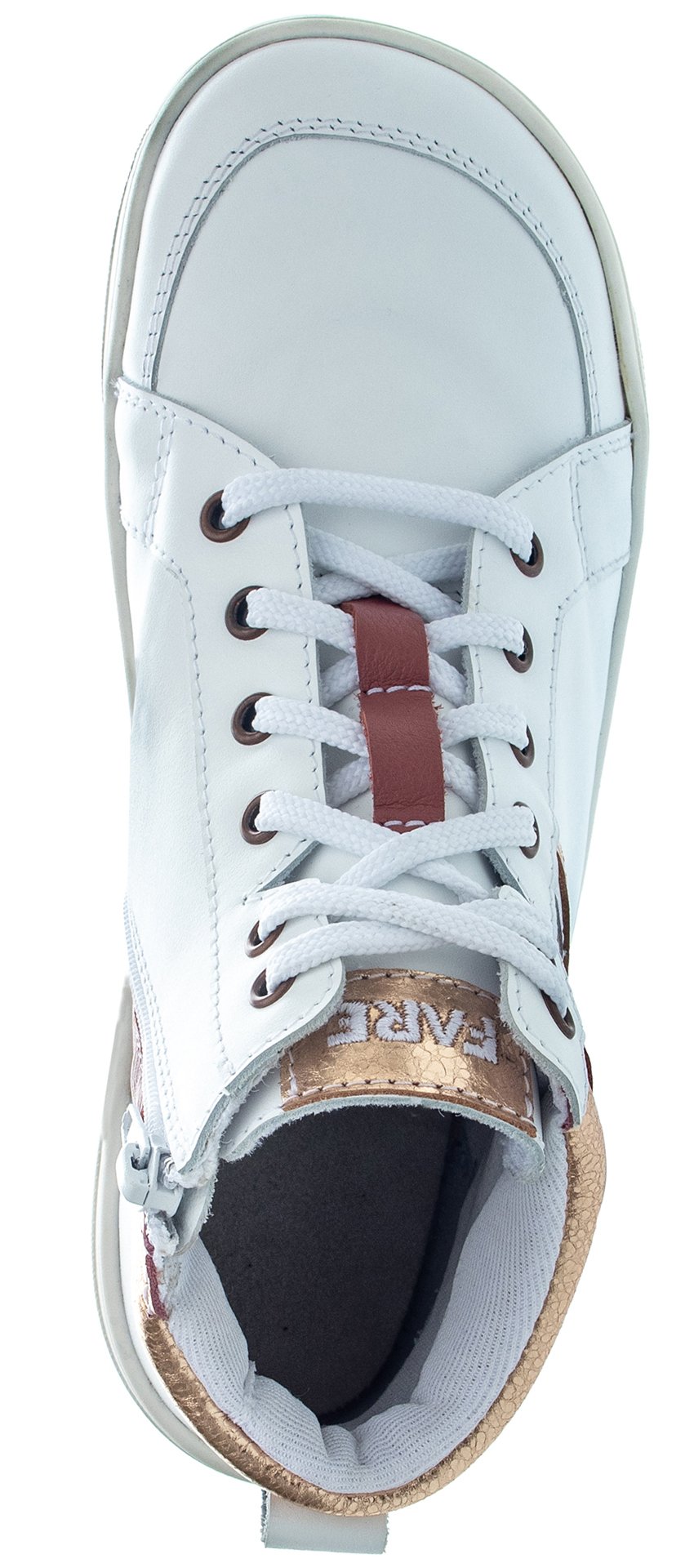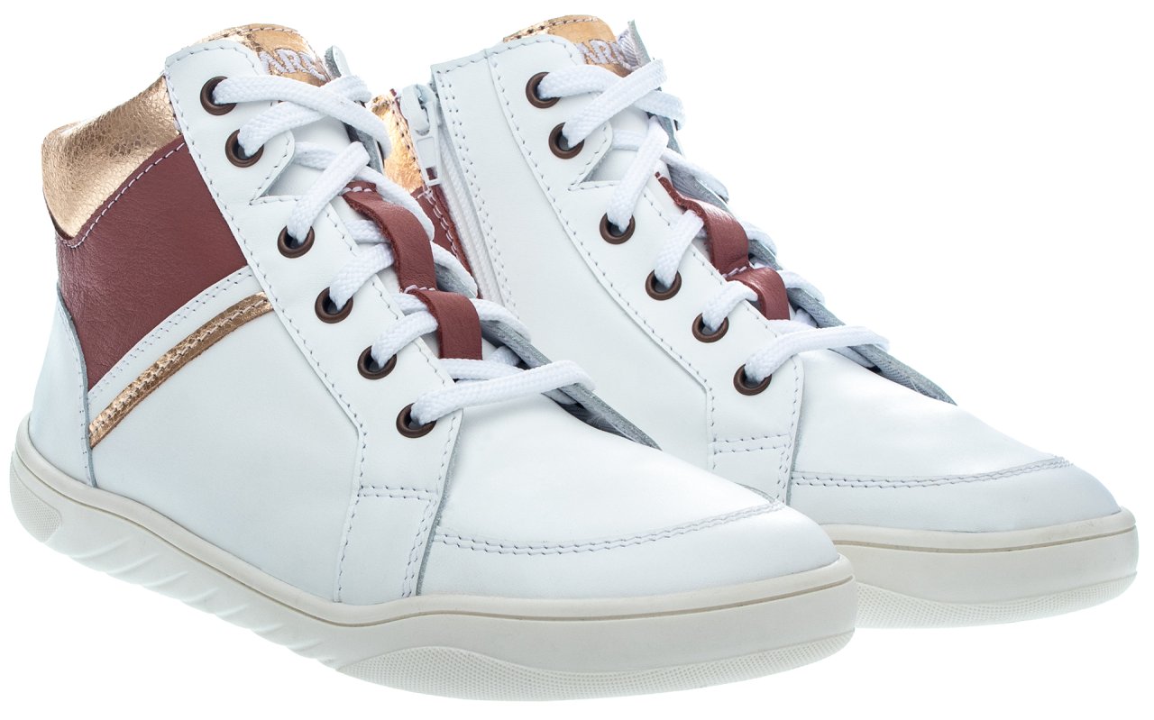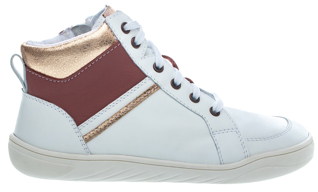 Objevte naši exkluzivní novinku označenou korunkou! Kotníkové tenisky SPRINGFIELDKY z oblíbené řady FARE MID-WIDE vás okouzlí prvotřídním zpracováním a stylovým designem. Obuv je vyrobená z kvalitní bílé usně, elegantně dozdobená zlatými a červenými detaily, které jim dodávají šmrnc a originální styl. Tenisky se pyšní anatomickou špičkou a flexibilní podešví (tloušťka 3 mm), mají mírně vyztuženými opatek.